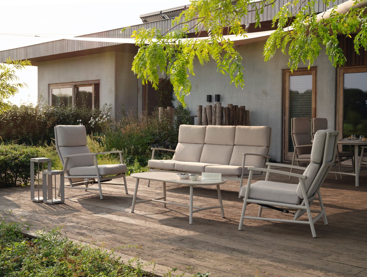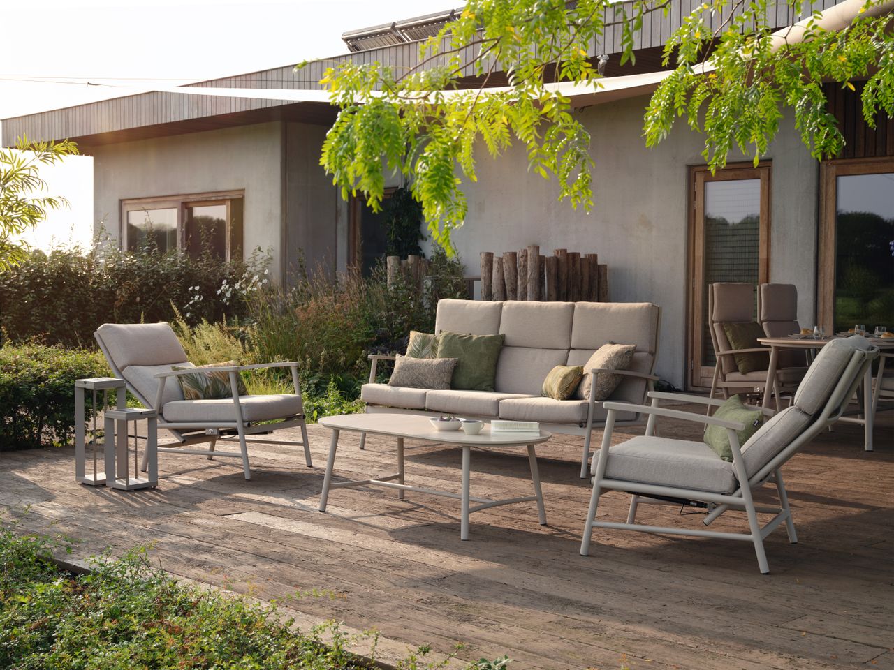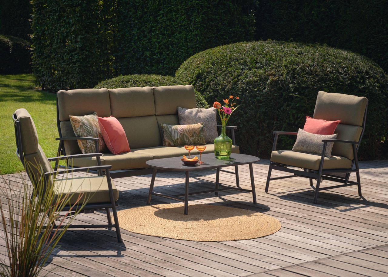 Flora set za odmor sa stolom je savršen za uživanje i u sunčanim trenucima i u kasnim večerima. Set ima bež jastuke i ram boje peska. Ram Flora seta za odmor je napravljen od aluminijuma, što ga čini lakim za čišćenje. Jastuci su otporni na vremenske uslove, što znači da su vodootporni i pogodni za ostavljanje napolju u svim vremenskim uslovima. Ako ste zainteresovani i za odgovarajući sto, preporučujemo Flora stočić za kafu! Da li već možete da zamislite sebe kako se opuštate ovde ili uživate u prijatnoj pauzi za kafu?