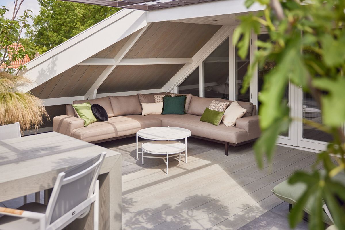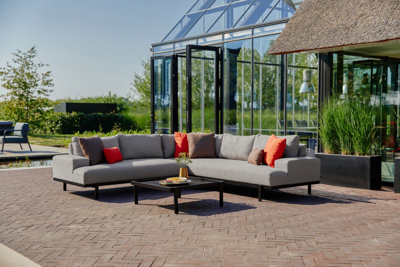 Lukas garnitura za odmor je velika ugaona sofa iz Hartmanove kolekcije za sve vremenske uslove. Ugaona sofa izgleda kao unutrašnja garnitura, ali je posebno dizajnirana za upotrebu na otvorenom i može ostati napolju u svim vremenskim uslovima. Jastuci nikada ne moraju da se skladište i mogu da izdrže duže izlaganje kiši ili suncu.