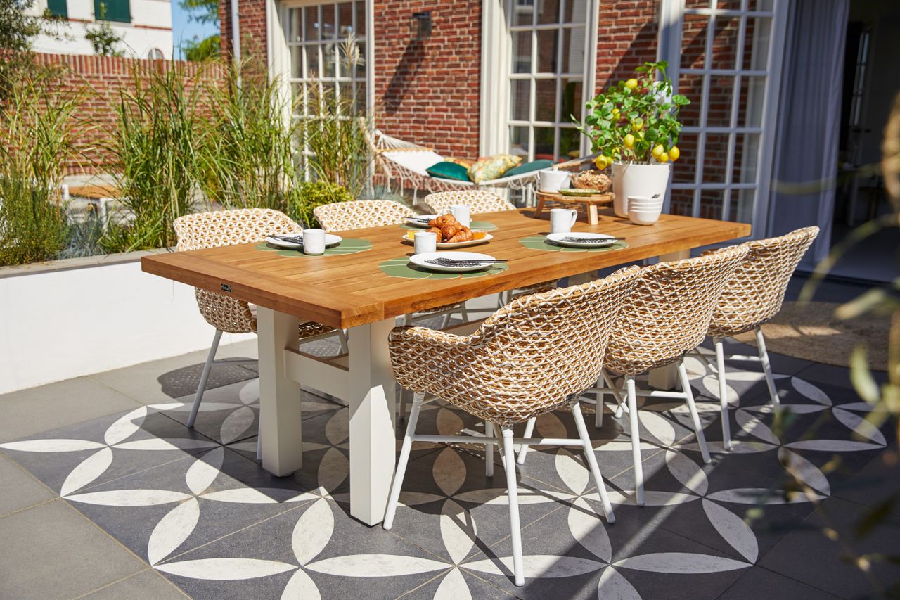 Stolica za ručavanje Delphine je baštenska stolica modernog izgleda. Pažljivo pleten ratan formira jedinstveni obrazac koji karakteriše Delphine. Pored prelepog dizajna, Delphine Design baštenska stolica je takođe veoma udobna! Možete je ostaviti napolju tokom cele godine, a čišćenje je veoma lako.